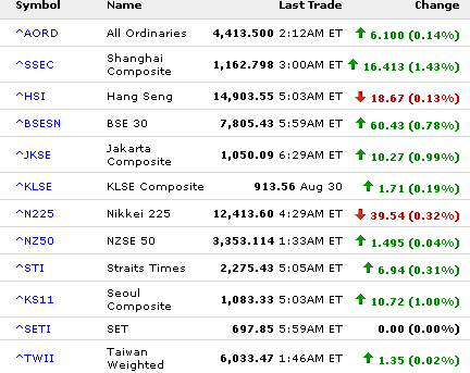 На момент завершения торговой сессии индекс Nikkei снизился на 39,54 пункта (-0,32%) и составил 12413,60 пункта. Курс американского доллара по отношению к японской иене вырос на 0,25 иены по сравнению с курсом за 30 августа 2005г., составив 111,32 иены/долл.